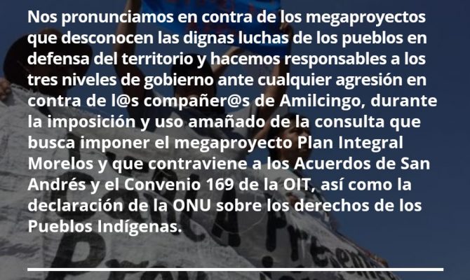 Mensaje desde la sierra Mazateca, por el asesinato de Samir Flores A LA FAMILIA DE SAMIR FLORES SOBERANES AL FRENTE DE PUEBLOS EN DEFENSA DE LA TIERRA Y EL AGUA MORELOS, PUEBLA,…