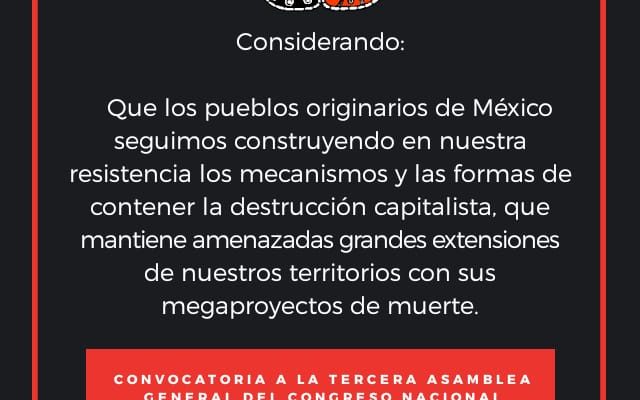 CONVOCATORIA A LA TERCERA ASAMBLEA GENERAL DEL CONGRESO NACIONAL INDÍGENA Y EL CONCEJO INDÍGENA DE GOBIERNO
