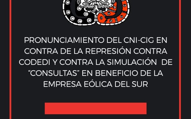 PRONUNCIAMIENTO DEL CNI-CIG EN CONTRA DE LA REPRESIÓN CONTRA CODEDI Y CONTRA LA SIMULACIÓN DE “CONSULTAS” EN BENEFICIO DE LA EMPRESA EÓLICA DEL SUR