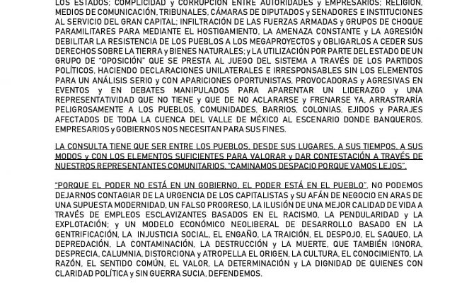 Pronunciamiento de la Coordinadora de Pueblos y Organizaciones del Oriente del Estado de México en Defensa de la Tierra, el Agua y su Cultura