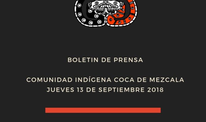 Boletín de prensa de la comunidad indígena de Mezcala, Jalisco. 13 de Septiembre de 2018