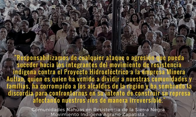 Comunicado de las Comunidades Nahuas en Resistencia de la Sierra Negra Movimiento Indígena Agrario Zapatista. Comisión de Derechos Humanos y Laborales del Valle de Tehuacan