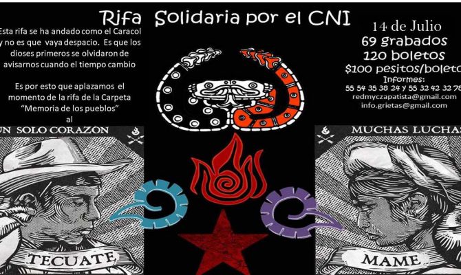 Apoya al CNI-CIG comprando boletos de $100.00 para la rifa de una Carpeta de 69 Grabados “Memoria de los Pueblos”. La rifa será realizada el sábado 14 de julio (se postergó del…