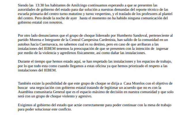 Siendo las 13:30 los habitantes de Amilcingo continuamos esperando a que se presenten las autoridades de gobierno del estado para dar solución a nuestras demandas del reporte técnico de las escuela primaria del…
