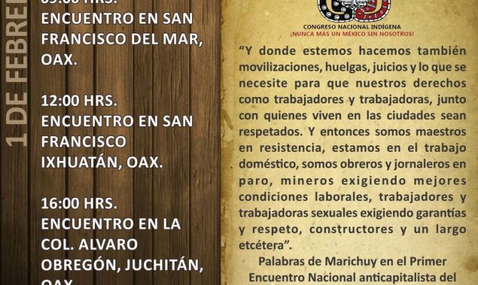 ENERO DOMINGO 21 10:00 HRS. ENCUENTRO CON LAS COMUNIDADES NAHUAS DE AQUILA, MICHOACÁN, EN SANTA MARÍA OSTULA 19:00 HRS. RECIBIMIENTO EN LA COMUNIDAD PUREPECHA DE NURÍO, MUNICIPIO DE PARACHO, MICH. LUNES…