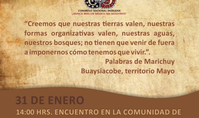«Creemos que nuestras tierras valen, nuestras formas organizativas valen, nuestras aguas, nuestros bosques; no tienen que venir de fuera a imponernos cómo tenemos que vivir». Marichuy, Buaysiacobe, Territorio Mayo MIÉRCOLES 31…