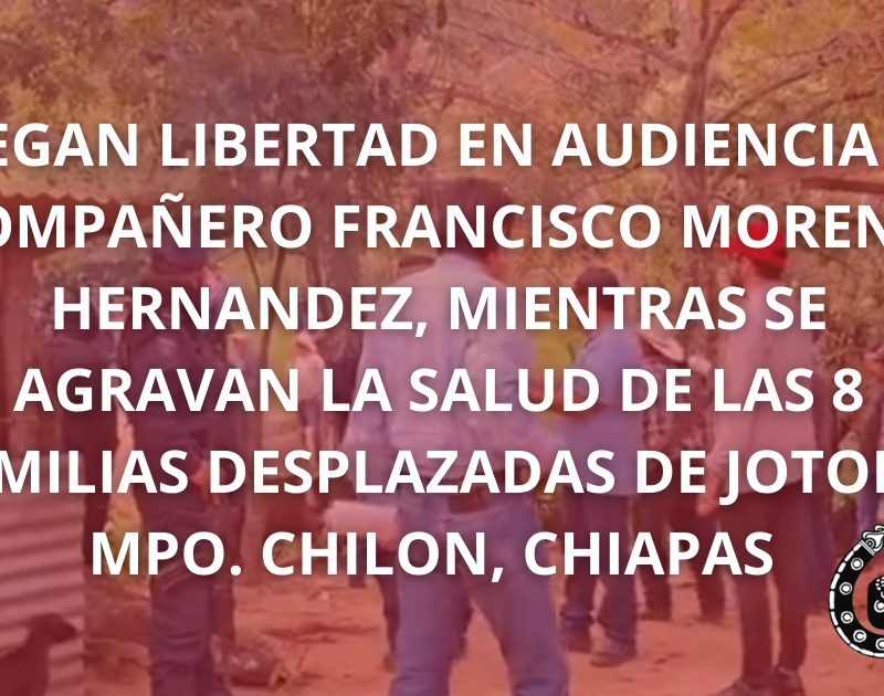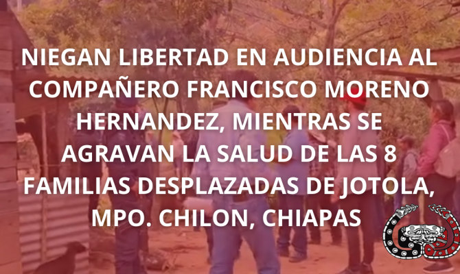 NIEGAN LIBERTAD EN AUDIENCIA AL COMPAÑERO FRANCISCO MORENO HERNANDEZ, MIENTRAS SE AGRAVAN LA SALUD DE LAS 8 FAMILIAS DESPLAZADAS DE JOTOLA, MPO. CHILON, CHIAPAS