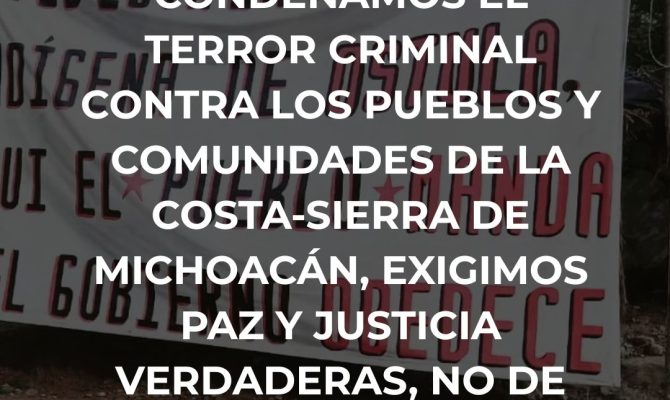 CONDENAMOS EL TERROR CRIMINAL CONTRA LOS PUEBLOS Y COMUNIDADES DE LA COSTA-SIERRA DE MICHOACÁN, EXIGIMOS PAZ Y JUSTICIA VERDADERAS, NO DE PURA PALABRA