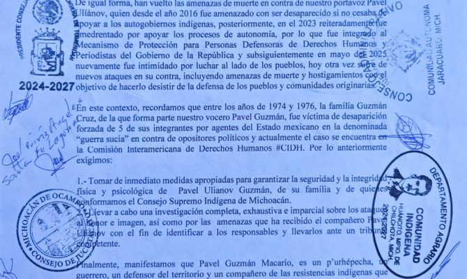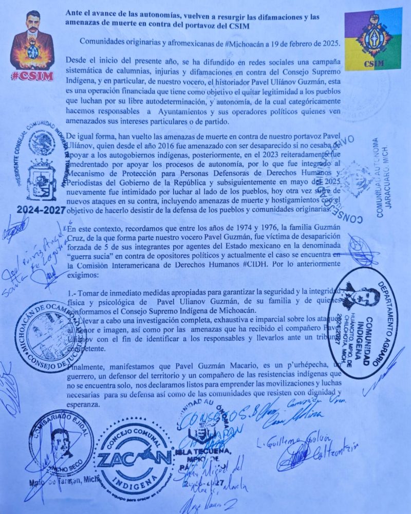 Comunidades denuncian amenazas en contra del vocero del Consejo Supremo Indígena de Michoacan CSIM