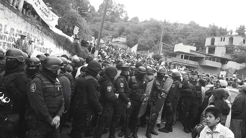 Espejo 6: En la comunidades ñatho de San Francisco Xochicuautla y Huitzizilpan, así como en una amplia franja del Alto Lerma, Estado de México, se pretende imponer el proyecto carretero privado Toluca- Naucalpan a cargo de la empresa Autovan, afectando un total de 23 kilómetros de bosque, además de la construcción de miles de casas habitación y clubs de golf como parte del proyecto denominado Gran Reserva Santa Fé. Este territorio es defendido por nuestros hermanos del Frente de Pueblos Indígenas en Defensa de la Madre Tierra.