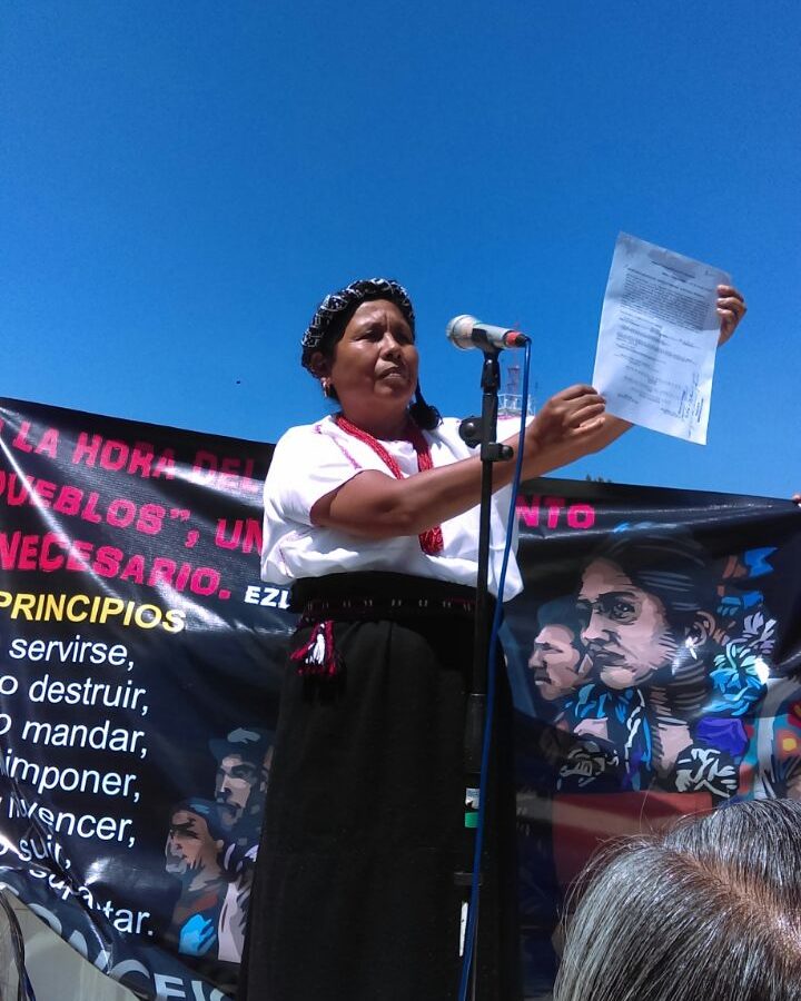DENUNCIA LEÍDA POR MARÍA DE JESÚS PATRICIO MARTÍNEZ DURANTE EL ACTO POLÍTICO CULTURAL REALIZADO EN PALENQUE