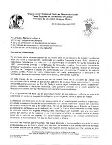 Reafirmamos nuestro agradecimiento a los pueblos del Congreso Nacional Indígena y al Concejo Indígena de Gobierno (CIG), por permitirnos caminar con ellos y por ser parte de esta gran casa común en donde nos sentimos protegidos por los mismos pueblos y nos organizamos frente a los ataques y destrucciones que nos hace el sistema capitalista neoliberal. Desde Acteal, saludamos y pedimos que siga caminando y haciéndose más fuerte el CIG y su Vocera María de Jesús Patricio Martínez.