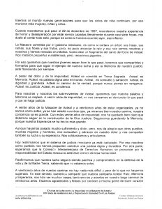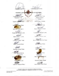 Desde Acteal Sitio de Conciencia y Casa de la Memoria y de la Esperanza, la Organización Sociedad Civil Las Abejas de Acteal y las y los sobrevivientes de la Masacre, hemos llegado a una conclusión que para cerrar nuestra Campaña Acteal: Raíz, Memoria y Esperanza y como parte de la Otra Justicia, invitamos al público en general a condenar simbólicamente a los autores intelectuales de la Masacre de Acteal y para así evitar que sigan cometiendo más crímenes en contra del pueblo mexicano, y si están de acuerdo por favor les invitamos a ponerse de pie y a emitir una sentencia condenatoria con la palabra “CULPABLE”, cuando nombremos a los criminales: