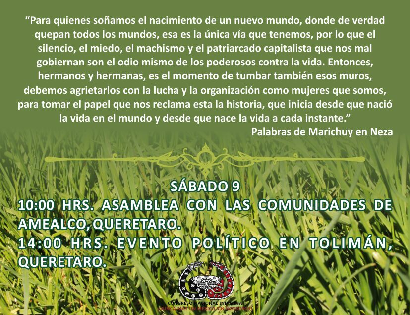 ACTIVIDADES DEL CIG Y SU VOCERA PARA EL SÁBADO 9