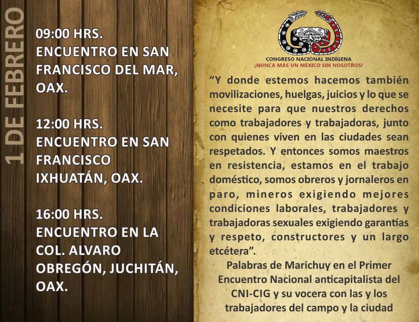 ACTIVIDADES DEL CIG Y SU VOCERA PARA EL JUEVES 1 DE FEBRERO