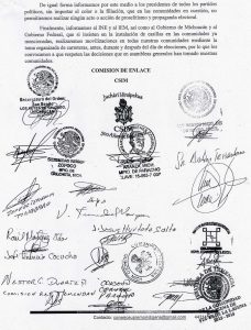 El Consejo Supremo Indígena de Michoacán, consejo autónomo y apartidista que lucha por la libre autodeterminación, el autogobierno y la autonomía de las comunidades originarias, conformado por las comunidades de Santa Fe de la Laguna, Naranja de Tapia, Tirindaro, Zirahuén, Santa Ana, Agua Verde, Caltzontzin, San Ángel Zurumucapio, Capácuaro, Corupo, Angahuan, Jicalán, Urapicho, Aranza, Sevina, Arantepacua, Cheran Atzicurín, San Felipe de los Herreros, Cocucho, Sicuicho, Pamatácuaro, San Antonio Tierras Blancas, San Benito, Cuanajo, Huecorio, San Andrés Tziróndaro, Zopoco, Carapan, Ichán, Cherato, Cheratillo, Oruscato, 18 de Marzo, Apo del Rosario, Rancho Seco, Tomendan y Tahuejo, representado en la presente declaración por la Comisión de Enlace que firma y sella al calce, manifestamos conjuntamente lo siguiente: