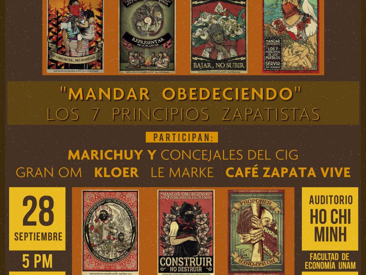 PRESENTACIÓN DE LOS CARTELES «MANDAR OBEDECIENDO» LOS 7 PRINCIPIOS ZAPATISTAS PARTICIPAN: MARYCHUY, CONCEJALES DEL CIG,…