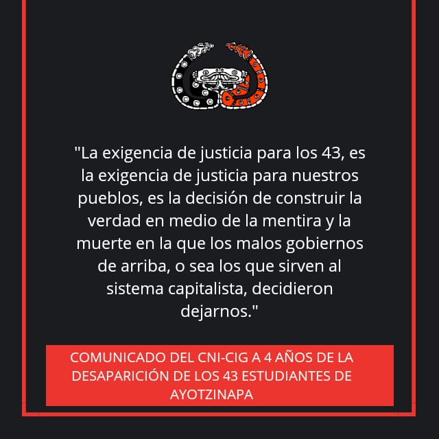COMUNICADO DEL CNI-CIG A 4 AÑOS DE LA DESAPARICIÓN DE LOS 43 ESTUDIANTES DE AYOTZINAPA