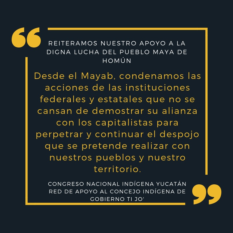 EL CONGRESO NACIONAL INDÍGENA YUCATÁN Y LA RED DE APOYO AL CONCEJO INDÍGENA DE GOBIERNO JO’ CONDENAN LOS ACTOS DE PROVOCACIÓN CONTRA EL PUEBLO MAYA DE HOMÚN