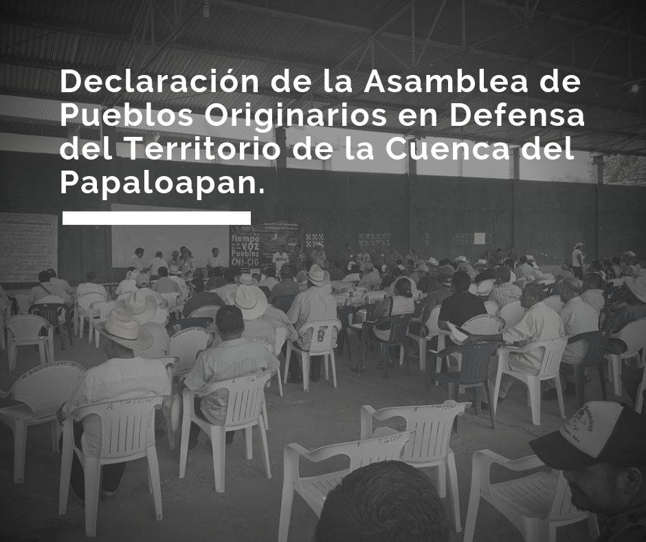 Declaración de la Asamblea de Pueblos Originarios en Defensa del Territorio de la Cuenca del Papaloapan