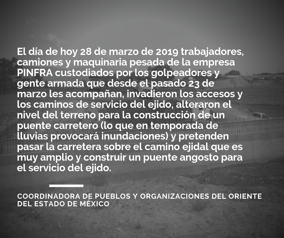 DENUNCIA URGENTE DE LA COORDINADORA DE PUEBLOS y ORGANIZACIONES DEL ORIENTE DEL ESTADO DE MÉXICO