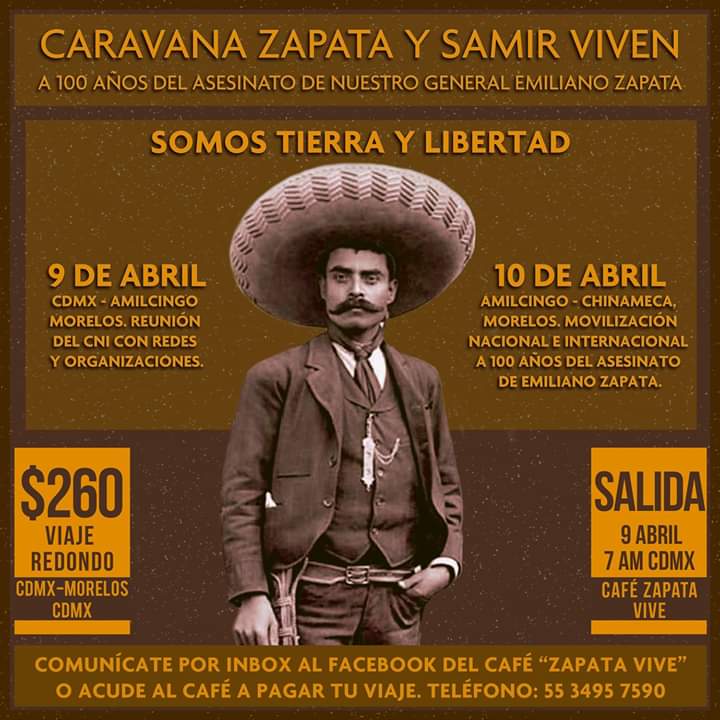 Caravana Zapata y Samir Viven. A 100 años del asesinato de nuestro General Emiliano Zapata, Somos Tierra y Libertad