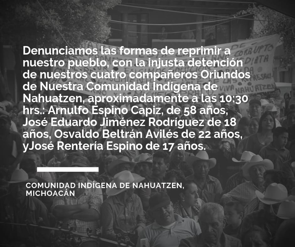 Pronunciamiento de la comunidad Indígena de Nahuatzen por represión del 26 de marzo