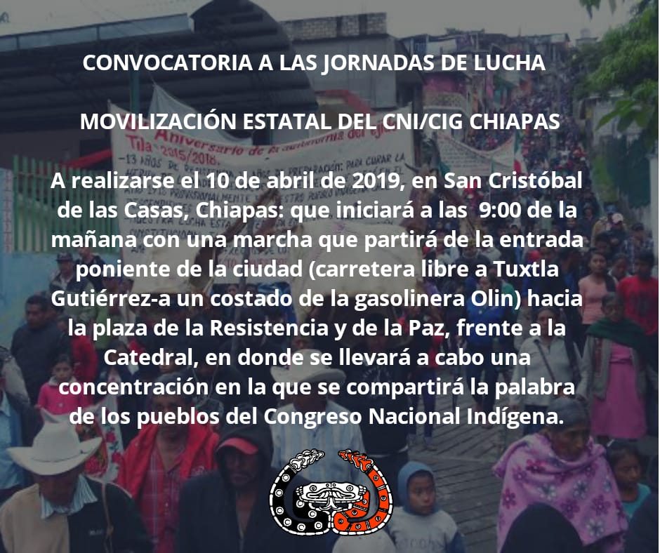 Convocatoria a la Movilización estatal del CNI-CIG Chiapas en el marco de la movilización nacional e Internacional a 100 años del asesinato del general Emiliano Zapata