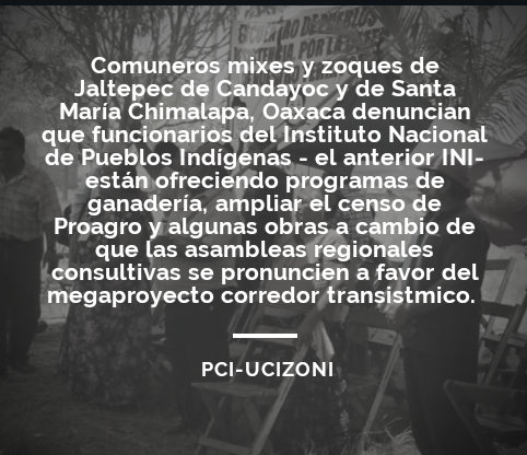 Denuncia el PCI-UCIZONI Oaxaca violación a derechos de los pueblos indígenas del Istmo de Tehuantepec por parte del INPI