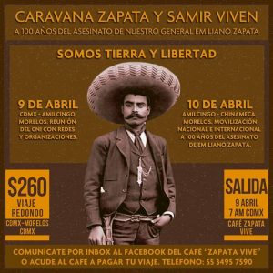 Regreso: 10 de abril, por la tarde de Chinameca a la CDMX. Café “Zapata Vive”