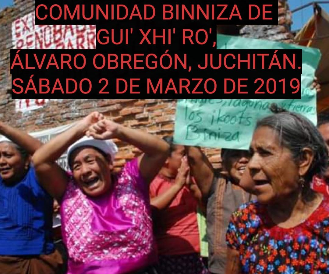 Comunicado Urgente Comunidad Indígena de Gui’ Xhi’ Ro’ – Alvaro Obregón, Juchitán, Oaxaca.