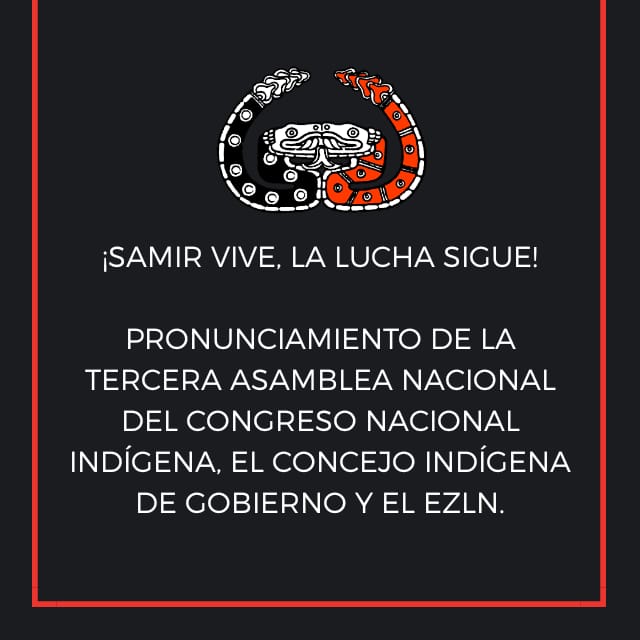 ¡SAMIR VIVE, LA LUCHA SIGUE! PRONUNCIAMIENTO DE LA TERCERA ASAMBLEA NACIONAL DEL CONGRESO NACIONAL INDÍGENA, EL CONCEJO INDÍGENA DE GOBIERNO Y EL EZLN