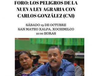 10:20 Foro: Los peligros de la nueva Ley Agraria, con Carlos González, abogado del Congreso Nacional Indígena.