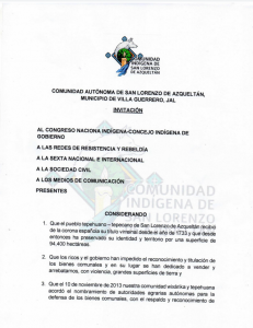 3. Que el 10 de noviembre de 2013 nuestra comunidad wixárika y tepehuana acordó el nombramiento de autoridades agrarias autónomas para la defensa de los bienes comunales, con el respaldo y reconocimiento de autoridades de pueblos indígenas de varias partes del país, fortaleciendo el gobierno tradicional por usos y costumbres.