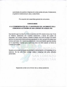 COMUNIDAD AUTONOMA DE SAN LORENZO DE AZQUELTÁN, MUNICIPIO DE VILLA GUERRERO, JALISCO.