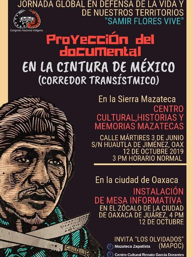 Convocation à la Journée globale de lutte en défense de la vie et de nos territoires «SAMIR FLORES EST VIVANT»