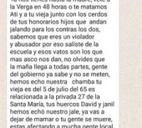 Pedro Uc recibió este mensaje hoy a la 1:17pm «Ya nos tienes hasta la madre, vete a la Verga en 48 horas o te matamos Ati y a tu vieja junto con los cerdos de tus honorarios hijos que andan jalando para los contras los dos, sabemos que eres un violador y abusador por … Sigue leyendo Amenazan de muerte al compañero Pedro Uc integrante de la asamblea maya