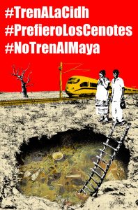 El sistema de #cenotes, del cual depende el derecho al agua, a un medio ambiente sano y al desarrollo de una vida digna de los pueblos mayas, es amenazado por la construcción del proyecto Tren Maya, el cual concesionaría sus aguas para construir nuevas ciudades (polos de desarrollo), complejos hoteleros, estaciones y parques agroindustriales.