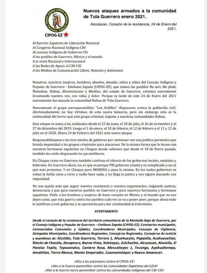 Alcozacan, Corazón de la resistencia. 24 de Enero del 2021. Al Ejercito Zapatista de…