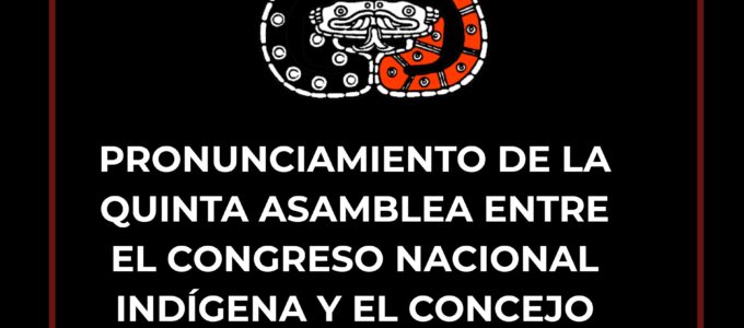 AL EJERCITO ZAPATISTA DE LIBERACION NACIONAL A LOS PUEBLOS DEL MUNDO A LAS PERSONAS QUE LUCHAN EN LOS CINCO CONTINENTES HERMAN@S Y COMPAÑER@S Herman@s del mundo, reciban un saludo de los que constituimos el Congreso Nacional Indígena, nosotr@s somos pueblos y comunidades que habitamos nuestras tierras y territorios desde antes que impusieron eso que … Sigue leyendo PRONUNCIAMIENTO DE LA QUINTA ASAMBLEA ENTRE EL CONGRESO NACIONAL INDÍGENA Y EL CONCEJO INDÍGENA DE GOBIERNO.