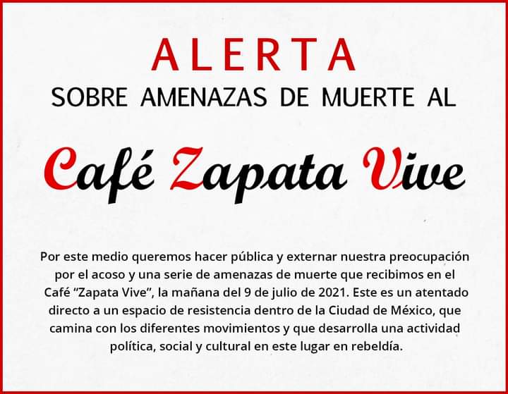 AMENAZAS DE MUERTE DIRIGIDAS AL CAFÉ ZAPATA VIVE