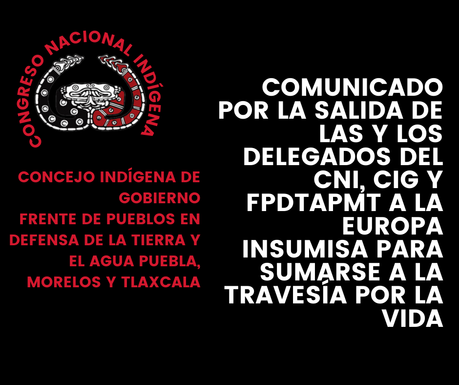COMUNICADO POR LA SALIDA DE LAS Y LOS DELEGADOS DEL CNI, CIG Y FPDTAPMT A LA EUROPA INSUMISA PARA SUMARSE A LA TRAVESÍA POR LA VIDA