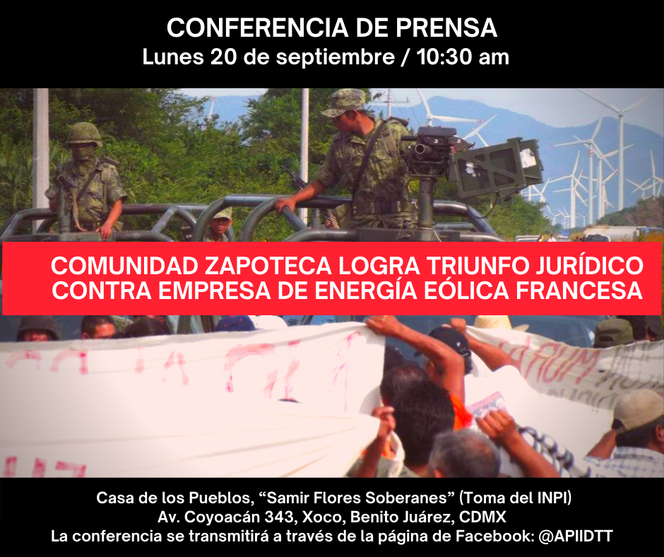 Invitación a la conferencia de prensa: Comunidad Zapoteca logra triunfo jurídico contra empresa de energía eólica francesa.