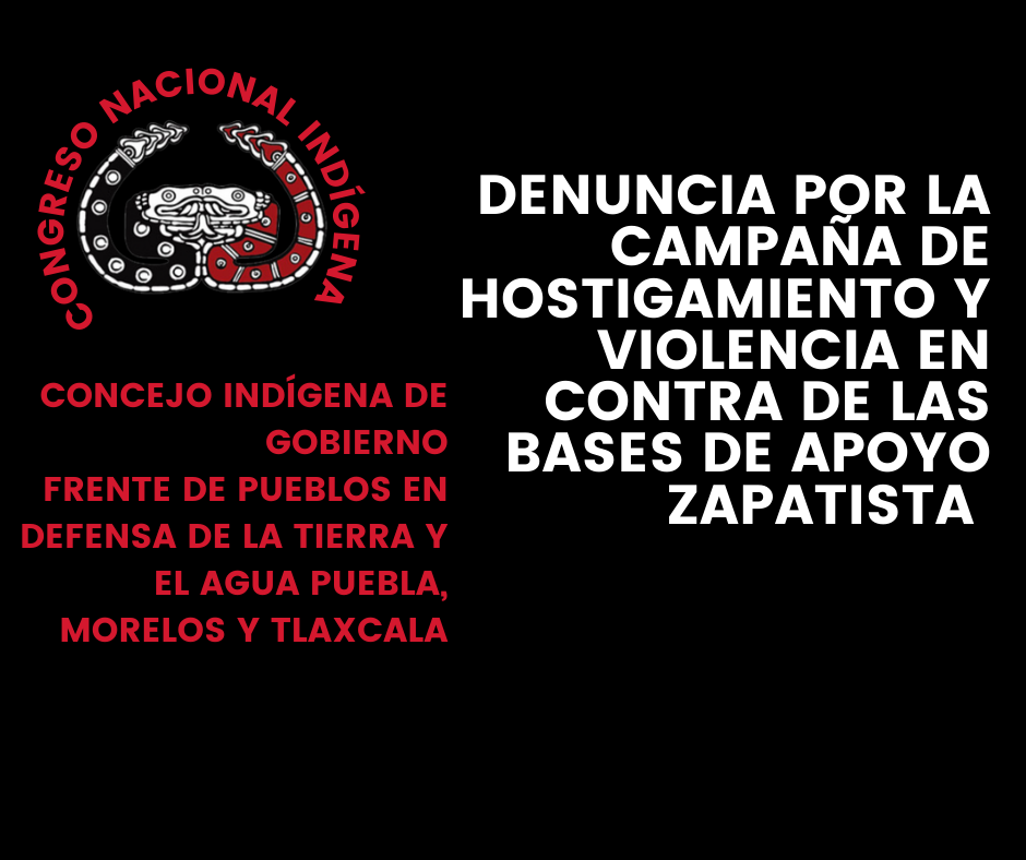 DENUNCIA DEL CNI – CIG – FPDTAMPT POR LA CAMPAÑA DE HOSTIGAMIENTO Y VIOLENCIA EN CONTRA DE LAS BASES DE APOYO ZAPATISTA