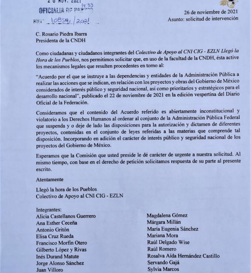 Pronunciamiento del colectivo Llego la Hora de los Pueblos con relación al Acuerdo publicado en el Diario Oficial de la Federación.
