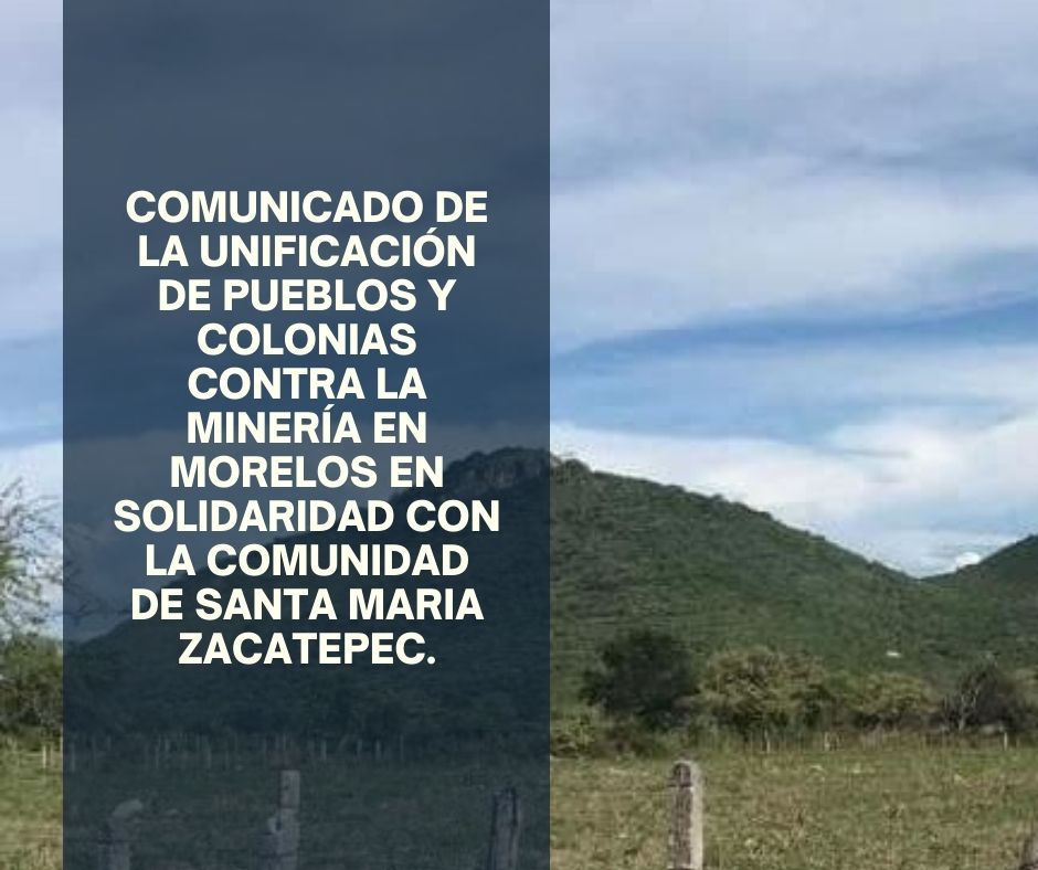 Comunicado de la Unificación de Pueblos y Colonias Contra la Minería en Morelos en solidaridad con la comunidad de Santa Maria Zacatepec.