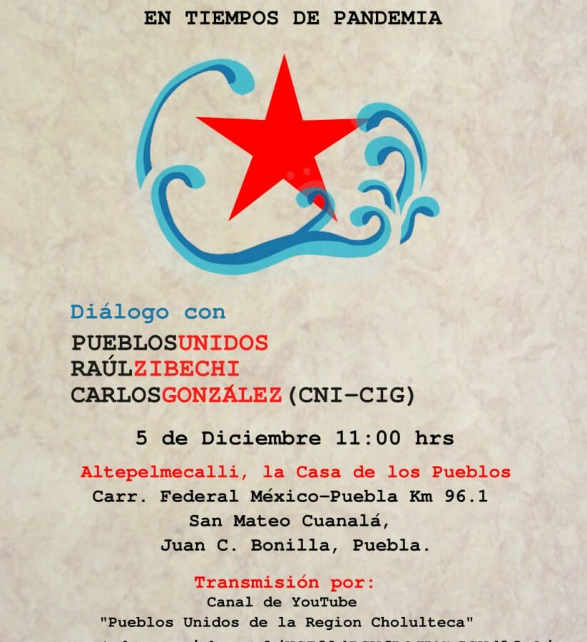 Diálogo con: Pueblos Unidos Raúl Zibechi Carlos González (CNI-CIG) 5 de Diciembre 11:00 hrs Altepelmecalli,…