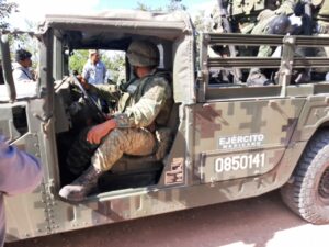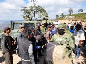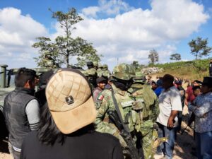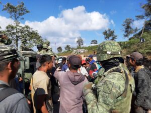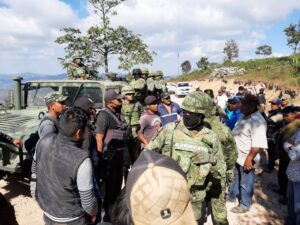 Frente a nuestra llamado a la Guardia Nacional, llegó personal de la SEDENA (Secretaría de la Defensa Nacional), policía estatal y municipal de Chilapa, así como la fiscalía del estado, pero no para enfrentar al grupo narco-paramilitar “Los Ardillos”, ni para detener la incursión de este grupo delincuencial, sino para desarmar, golpear a cachazos y cachetadas a nuestra Policía Comunitaria, a compañeros y comandantes regionales en uno de los retenes que tenemos instalados en la comunidad de Xolotepec. Frente a la violencia de la SEDENA y demás corporaciones, la comunidad, hombres y mujeres, les exigieron que se detuvieran y que si no ayudarían, mejor que se fueran.
