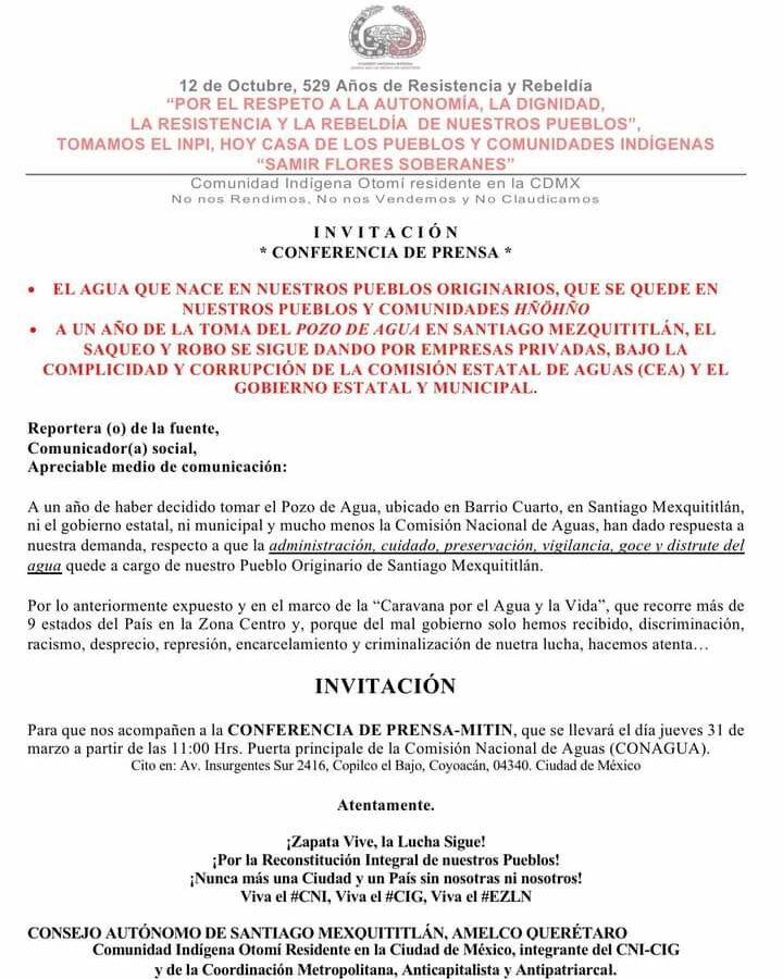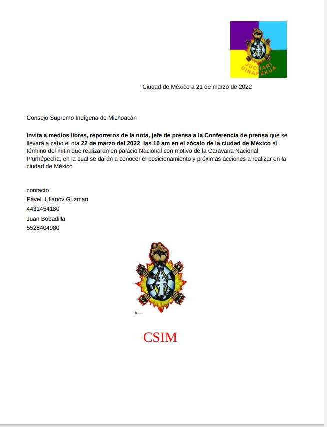 Consejo Supremo Indígena de Michoacán Invita a medios libres, reporteros de la nota, jefe de…