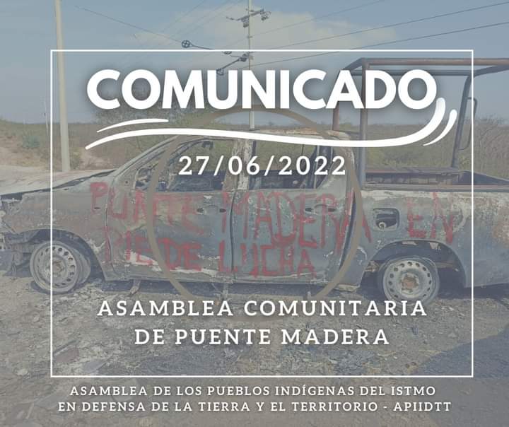 COMUNICADO DE LA ASAMBLEA COMUNITARIAS DE PUENTE MADERA Y APIIDTT
